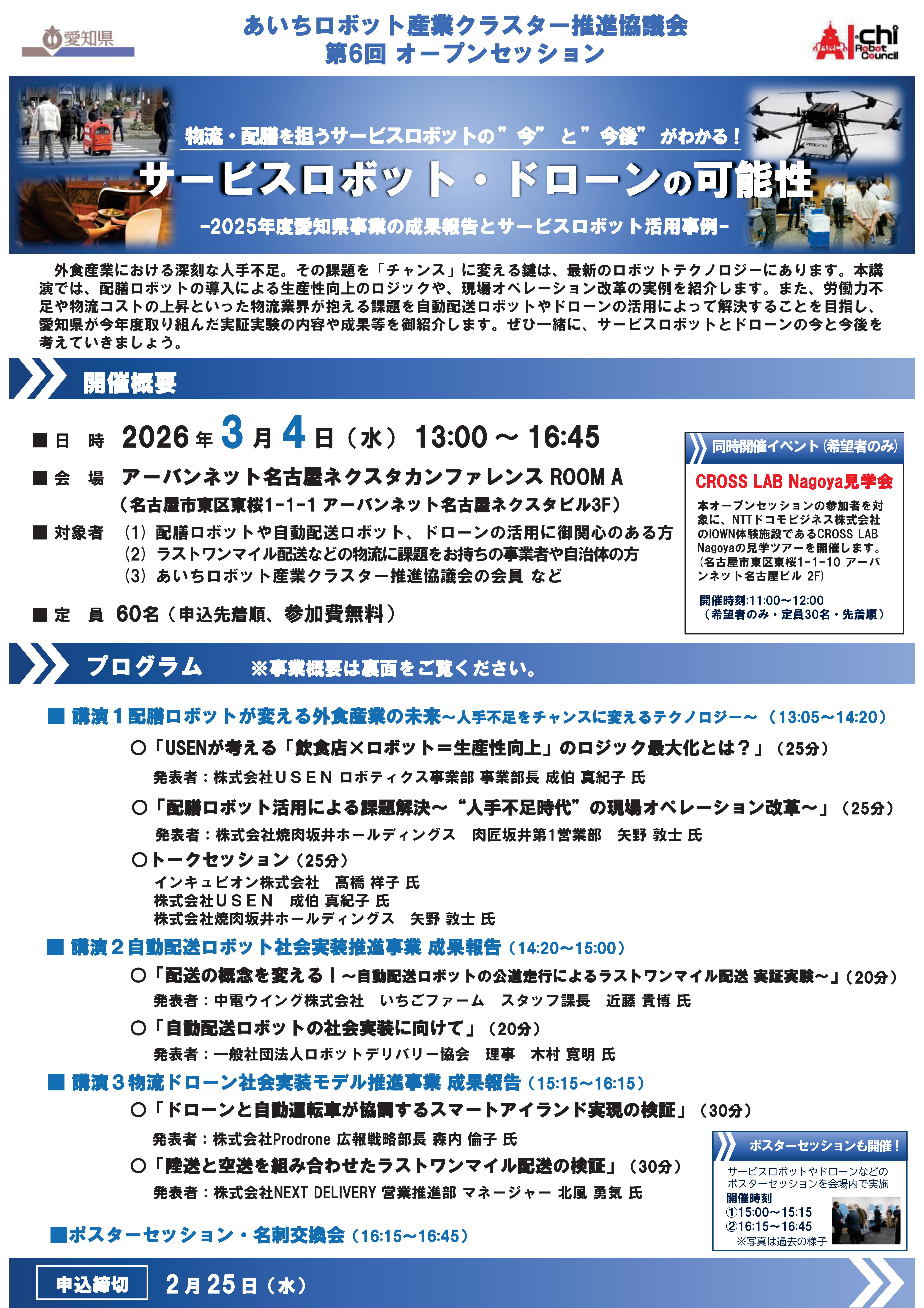 愛知県では、配膳ロボット・自動配送ロボット・ドローンをテーマとした講演会を開催します。